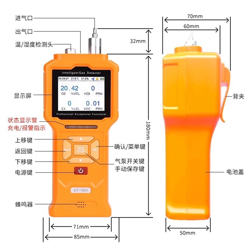 GT-903 泵吸式气体检测仪适用于各种工业环境和特殊环境中的气体检测,采用进口传感器和微控制技术,响应时间快,测量精度高,稳定性和重复性好,各项参数用户可自定义设置,操作简单。